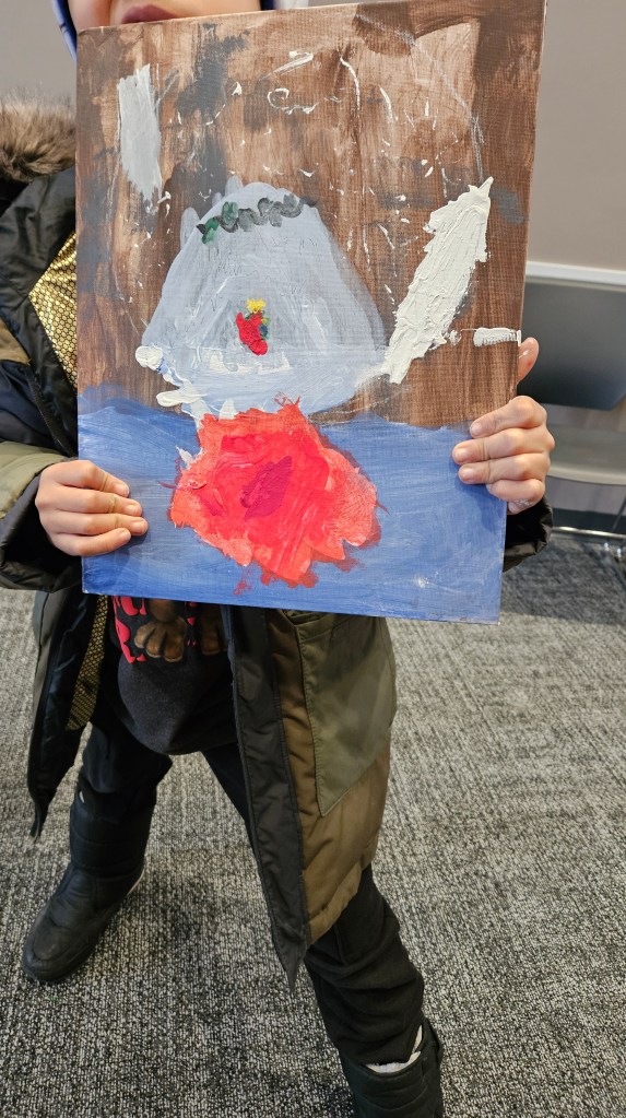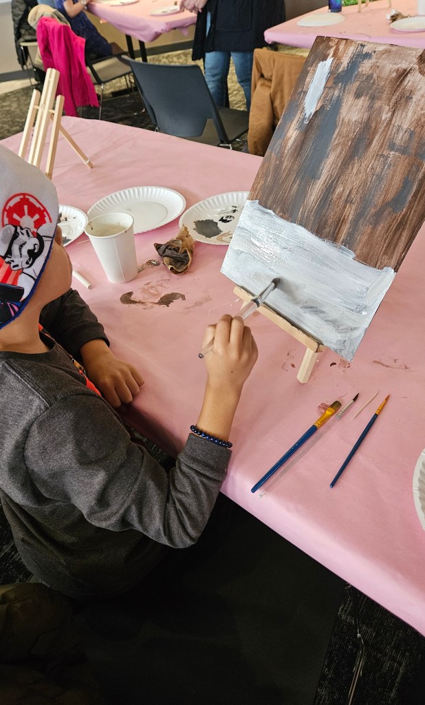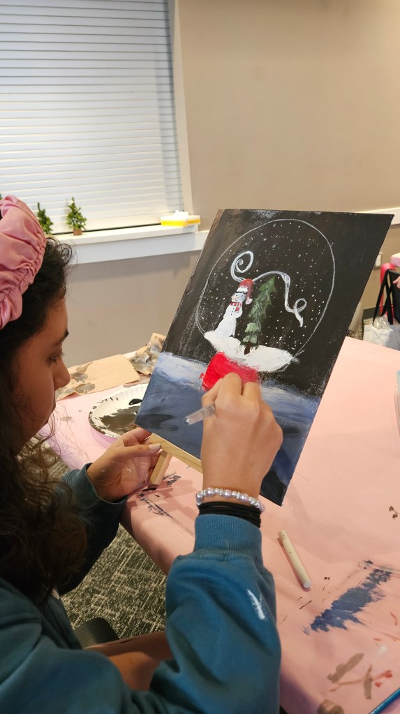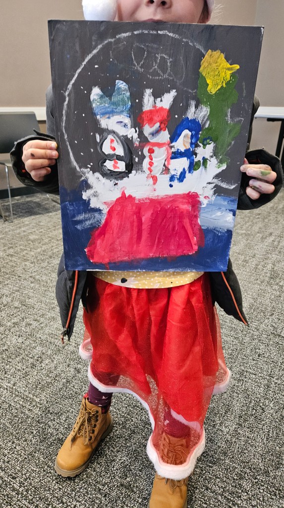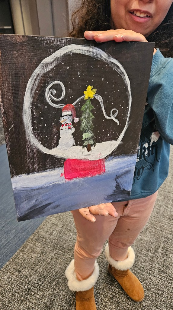 The kids had a homeschool meet-up at the library. December’s activity was painting a snow globe on canvas.