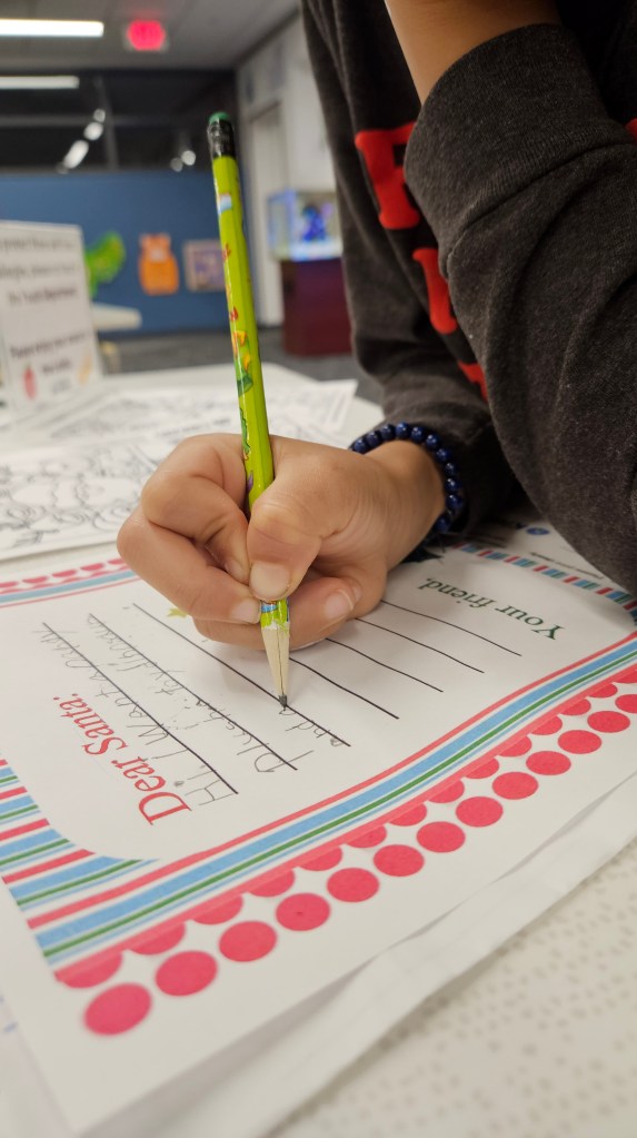 But the sweetest part of our day at the library was writing letters to Santa Claus. 🥹🎅🏾🤶🏾