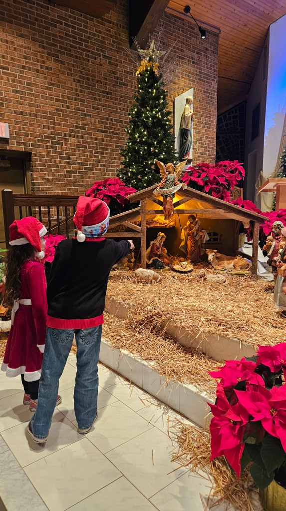 Zaya (5) and Zephaniah (8) were excited to see the Baby Jesus revealed at the Christmas Eve Mass. 🥰🎄✨️
