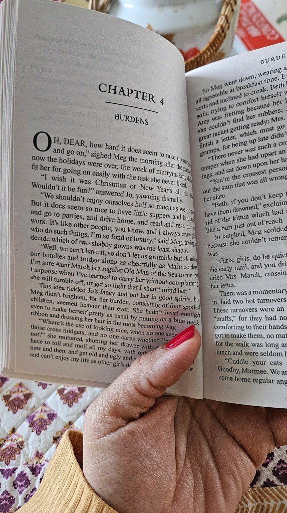 Before heading out, I read a few pages of the classic novel Little Women.