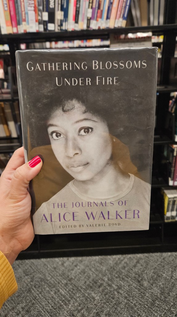 I checked out Alice Walker’s Gathering Blossoms Under Fire. I’ve read part of her book, but I never finished it. I thought I’d try to finish it this time.